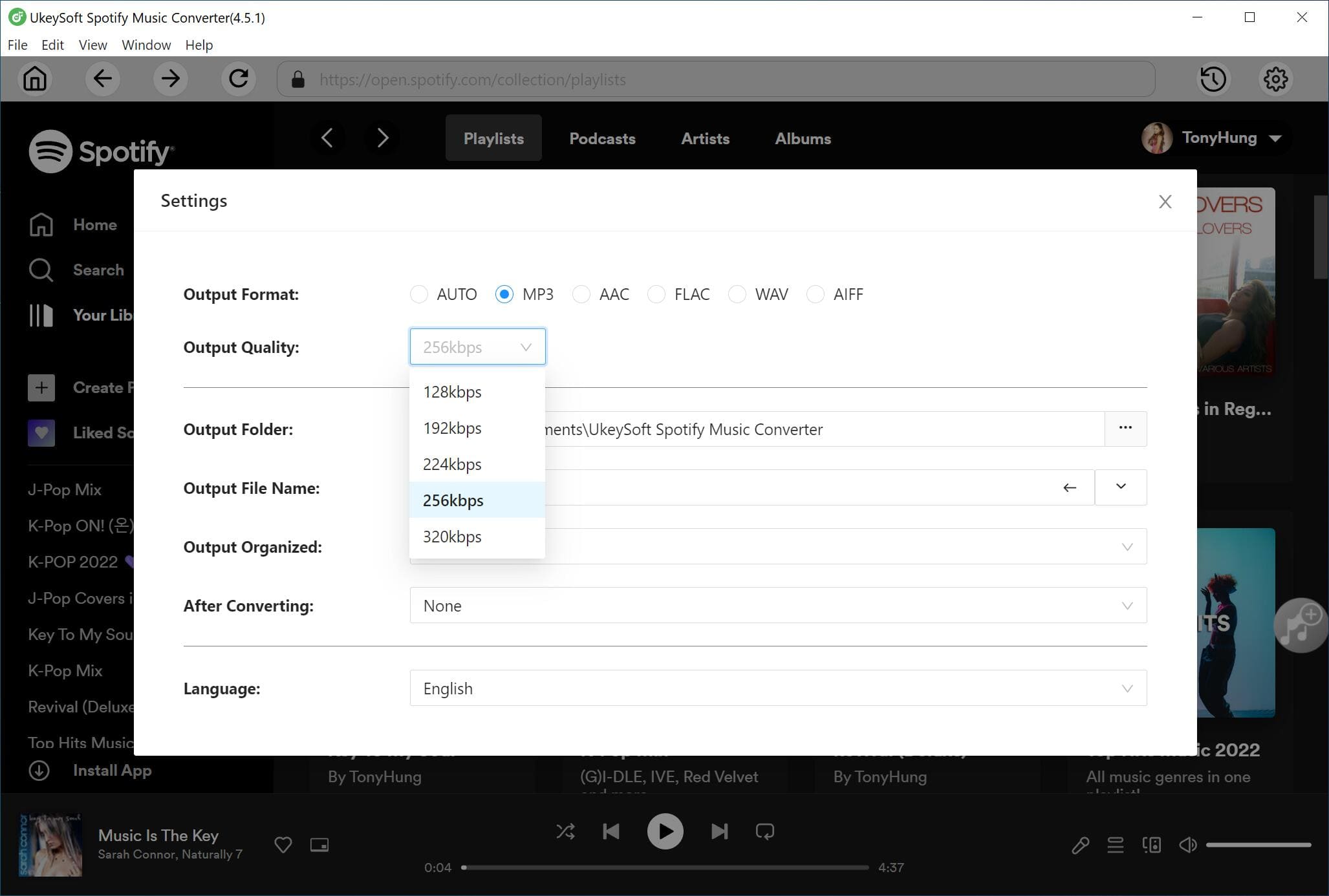 Spotify streams 96 kbp/s audio tracks. Premium subscribers can upgrade to 320 kbp/s high-quality stream. The UkeySoft helps you download high-quality offline songs in 320kbps with free or premium account, so you can transfer the downloaded Spotify music to any device for offline listening, which is the best way to take songs out of Spotify app and web player.